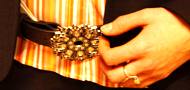 - der Gürtel mit der großen mit Strasssteinen besetzten