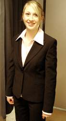 zusammengebundene Haare) sehr seriös wirken lassen.