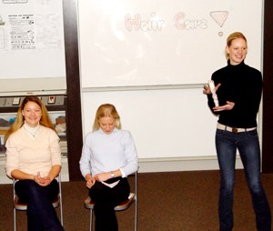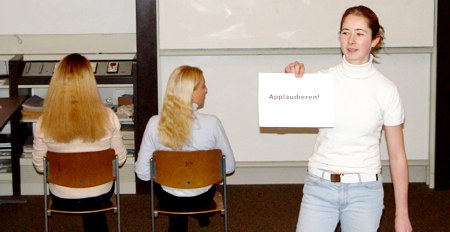 Erfindungen gemacht! ![]() Mit den Pflegestoffen aus der Hair-Care-Brush können sie ihre Haare ganz individuell pflegen, weil sie die Pflegestoffe speziell auf ihr Haar abstimmen können. Wir haben das passende Sortiment für trockene, fettige und splissige Haare! Mit der Hair-Care-Brush können sie nichts falsch machen! Es ist die ideale Pflege für ihr Haar, vertrauen sie unseren Produkten, sie sind alle dermatologisch getestet und an den ph-Wert der Haut angepasst.“ Moderator: „Vielen Dank!“ Publikum: großer Applaus, Bewunderung