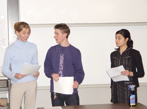 7. Szene Personen: Sally, Jane und der Professor Jane und Sally begrüßen Professor White (alle setzen sich). Er gibt im Anschluss die wissenschaftlichen Erklärungen für die außergewöhnliche Wirkungsweise von MultiClean und macht dessen Effizienz anhand einer Statistik deutlich (Einblenden der Statistik) Anschließend beweist Prof. White die Funktion als Blumendünger (Einblenden der Blumenbilder) (Von überall her Staunen und ein Raunen geht durch das Publikum). Sally und Jane verabschieden den Professor wieder.
