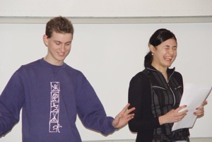 8. Szene 2. Bestellmöglichkeit ![]() 9. Szene Personen: Sally und Jane Sally bedankt sich bei Jane für ihr Kommen und ihre tolle Entdeckung und verabschiedet sich von dem ganzen Publikum, womit sie die Veranstaltung beendet (lauter Beifall des Publikums).