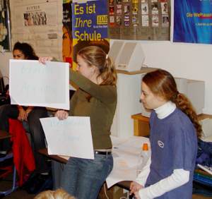 Drehbuch der Verkaufsshow Mitwirkende und Rollen Lisa Carstensen: Moderator Anja Bichel: Experte Sabine Weiß: Erfinder Imen Righi: Chemiker Lisa-Rike Birkholz: Dermatologe Vorbereitung der Show Aufbau des Bühnenbildes ![]() Vorbereitung des Publikums Vertrautmachen des Publikums mit Hinweisen (z.B. “Applaus”, “Begeisterung”) ![]() Ablauf der Show 1.Szene (Moderator) Problemdarstellung anhand von Beispielen aus dem Alltag Ankündigung des Produktes als Innovation Film 1 : kurze Einblendungen als Beispiele für die Wirkung des Produktes, z.B. glänzendes Auto, saubere Fenster Begeisterung im Publikum 3. Vorstellung des Produktes im Studio (das Produkt ist auf einem Präsentiertischchen ästhetisch angerichtet, der Moderator hält ebenfalls eines in der Hand)