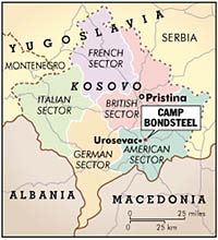 Hintergründe | Geographische Daten | Links Kosova , auch bekannt als Kosovo, ist eine umstrittene Region zwischen der dortigen albanischen Bevölkerungsmehrheit und Serbien. Früher war Kosova eine autonome Region in der jugosllawischen Föderation. 1989 wurde die Autonomie Kosovas durch das Regime von Slobodan Milosevic aufgehoben, dessen spätere Aktionen in den Zerfall Jugoslawiens führten. Jugoslawien, dass aus Serbien,Kroatien, Mazedonien, Solvenien, Bosnien und Herzegovina, Kosova und Vojvodina bestand, wurde durch die Kriege Serbiens gegen Slovenien und Kroatien, sowie Bosnien-Herzegovina und zuletzt gegen Kosova zerstört. Nach der Aufhebung der Autonomi Kosovas hat die serbische Regierung die meisten Schulen in albanischer Sprache geschlossen und eine massive "Säuberung" aller wichtigen staatlichen Posten vorgenommen, die früher von einheimischen Albanern besetzt waren. Ebenfalls wurden das Paarlamment, die Regierung und alle wichtigen Organe aufgelöst. Serbien instalierte somit ein Regime in Kosova, dass die Grundrechte der einheimischen Albaner systematisch unterdrückte. Anfang der 90-ger Jahre versuchten, die Albaner Kosovas, unter Führung von Ibrahim Rugova durch eine friedliche Politik ihre Rechte wieder zu erkämpften, jedoch ohne Erfolg. Im Frühjahr 1998 began Serbien den Kampf gegen die kosovarische Befreiungsarmee (UCK), eine "Rebellen-Organisation", die nach Jahren der friedlichen Politik, keinen anderen Ausweg mehr sah, als mit Waffen gegen die repressive Besatzung und Unterdrückung zu kämpfen. Beim Kampf gegen die UCK gingen serbische Streitkräfte immer unverhältnismässiger vor und verschonten dabei auch die Zivilbevölkerung nicht. Es wurden immer wieder auch unschuldige Frauen und Kinder ermordet und ganze Dörfer und Ortschaften zerstört und verwüstet Nach zahlreichen, erfolglosen diplomatischen Bemühungen und Vermittlungen, began die NATO im März 1999 mit der Bombardierung Serbiens. Nach einigen Wochen kappitulierte Milosevic und unterschierb einen Friedensvertrag, der Kosova unter UN-Verwaltung und miliärischem Schutz der KFOR stellte. Der Krieg in Kosova hatte mehr als eine Million Flüchtlinge und über 10.000 tote Menschen zufolge. Jetzt wird Kosova von der UNMIK und NATO verwaltet. Kosova gränzt an Serbien im Norden und Nord-Osten, Montenegro im Nordwesten und Westen, sowie an (FYROM) Mazedonien im Süden. Das Land erstreckt sich auf insg. 10,887 km2 und hat eine Bevölkerung von ung.2 Mio. Die Mehrheit von ihnen, ung. 90% sind Albaner.