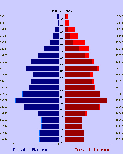 Bevölkerung insgesamt: 571.635; Bevölkerungsdichte: 2634/km²