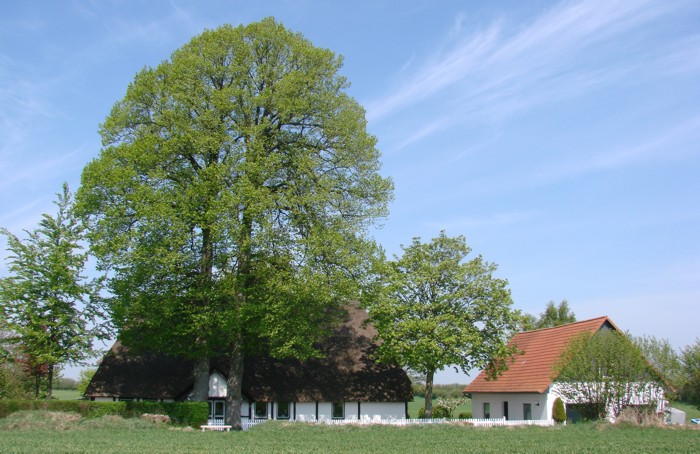 Stallgebäude. Die Linden vor dem Haus sind deutlich zu erkennen.