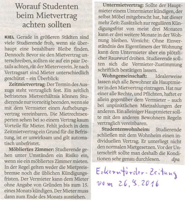 Aktualisiert am 26.9.2016: "Worauf Studenten beim Mietvertrag achten