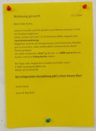 Man kann auch über eine Anzeige, z.B. in den Kieler Nachrichten, sein Wohnraumangebot mit der
