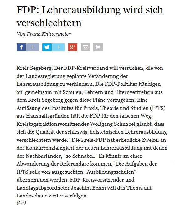 unterstützt. Leider ist das IPTS aufgelöst worden. ("FDP: Lehrerausbildung wird sich