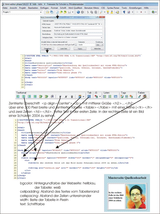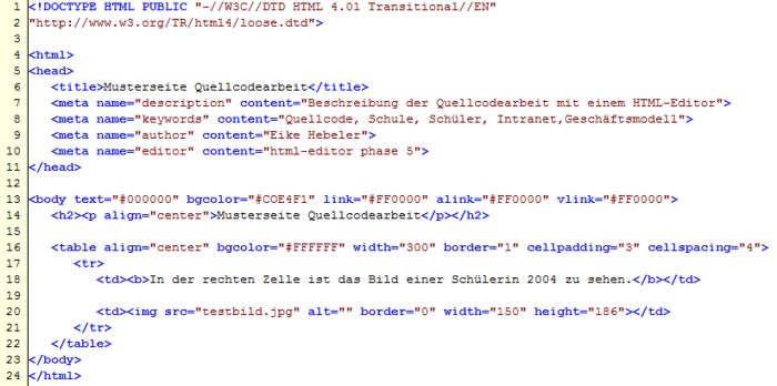 Quellcodearbeit mit dem HTML-Editor Phase 5 ab der 7.